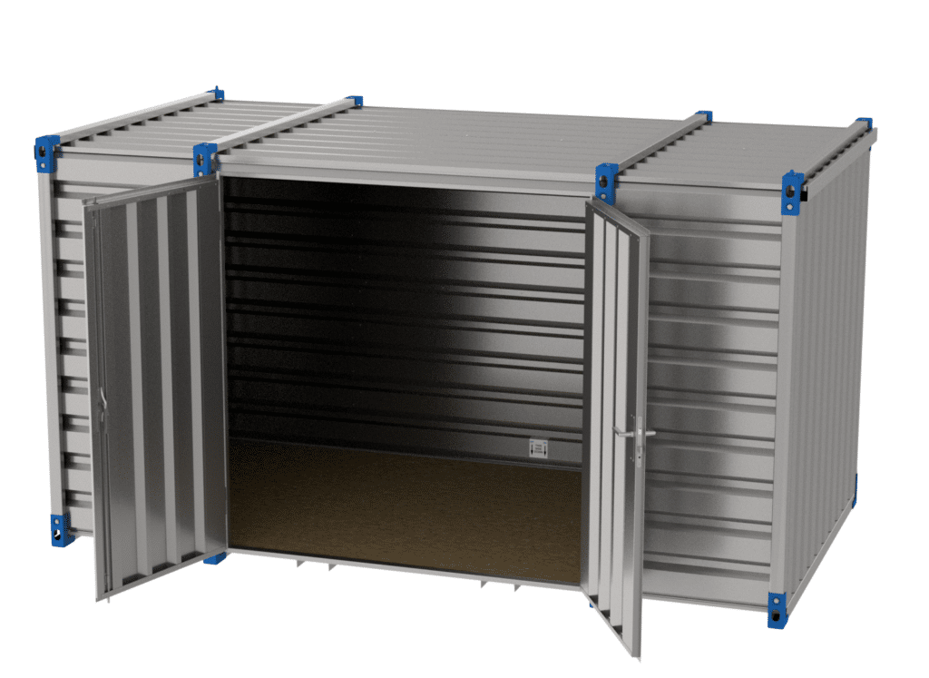 Le superposage des containers est possible sur un niveau avec l’installation obligatoire de nos renforts de toit, disponible au catalogue. Grâce aux panneaux indépendants de nos kits, il est possible d’ajouter une double-porte, de raccorder les containers entre eux ou encore de retirer les parois dont vous n’avez pas besoin.
