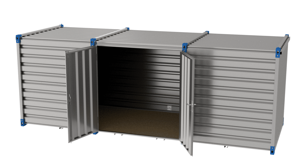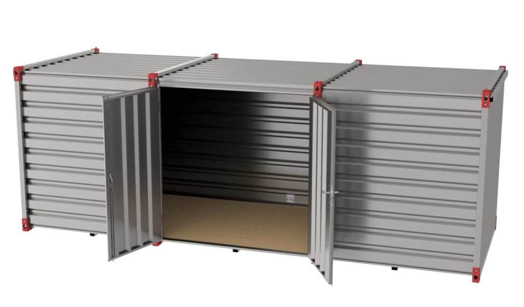 Le superposage des containers est possible sur un niveau avec l’installation obligatoire de nos renforts de toit, disponible au catalogue. Grâce aux panneaux indépendants de nos kits, il est possible d’ajouter une double-porte, de raccorder les containers entre eux ou encore de retirer les parois dont vous n’avez pas besoin.